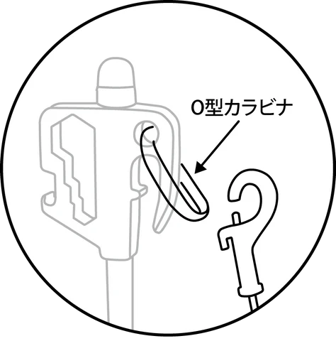 O型カラビナにリードを取付ける‥リードを図のように取付けてください。