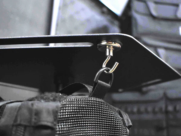 市販のマグネットフックを利用すればハンギングシェルフもセット可能です。