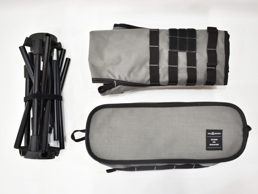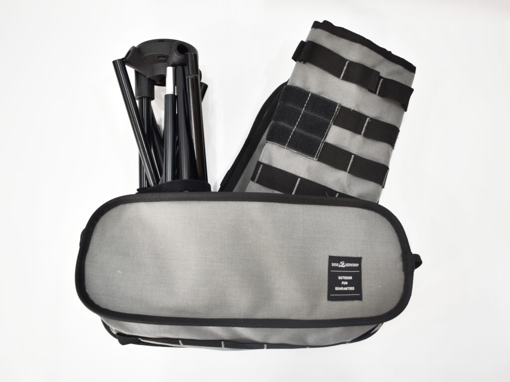ダブルフレームを採用し、ねじり剛性を高めたコンパクトフォールディングチェア。座面は贅沢にダブルレイヤーを採用、生地の引張強度を高めました。また各所にポケットやモールテープを配置。使用シーンに合わせ拡張性を持たせたモデルです。