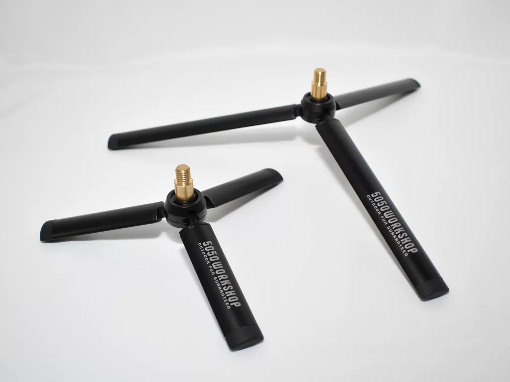 2WAYSTANDをより便利に拡張できる三脚。スタンドのポール部分にジョイントして土台として使用可能。クランプが取り付けられないテーブルなどでも卓上置き型として2WAYSTANDが使用できます。またアタッチメントの着脱でネジ径がM10⇔1/4インチに替えれるので、様々なアイテムと組み合わせて使用する事も可能なマルチアイテムです。