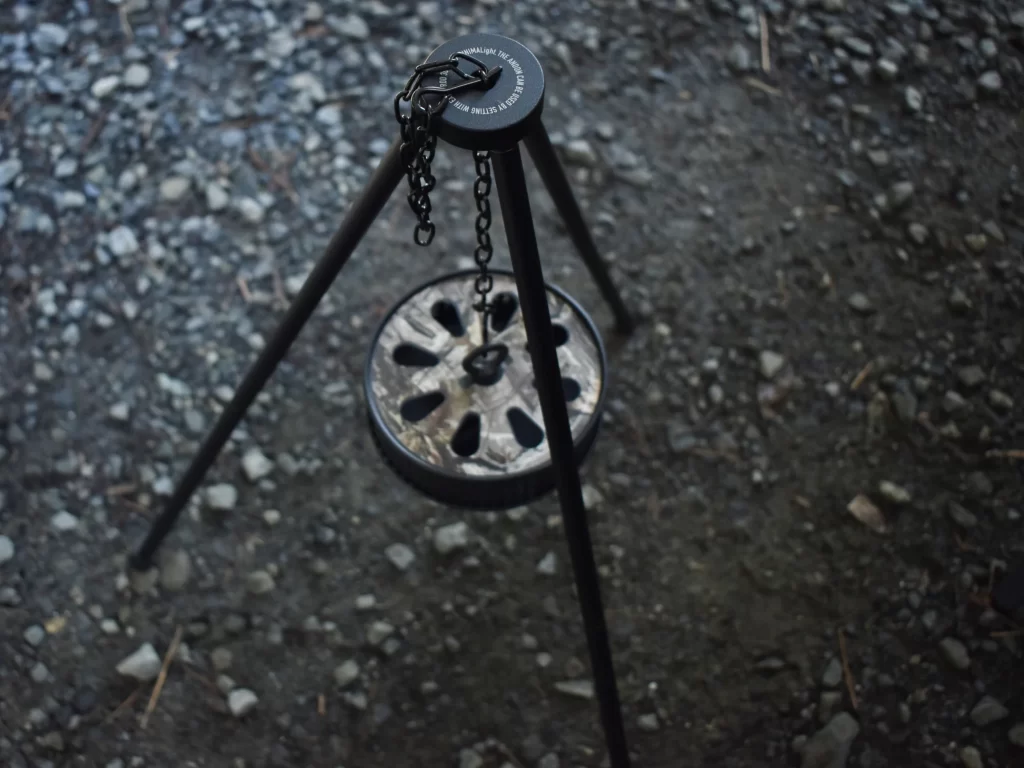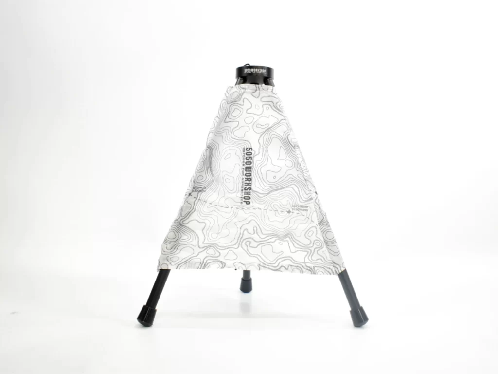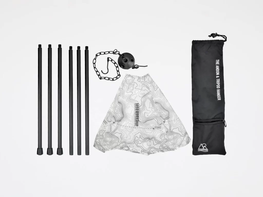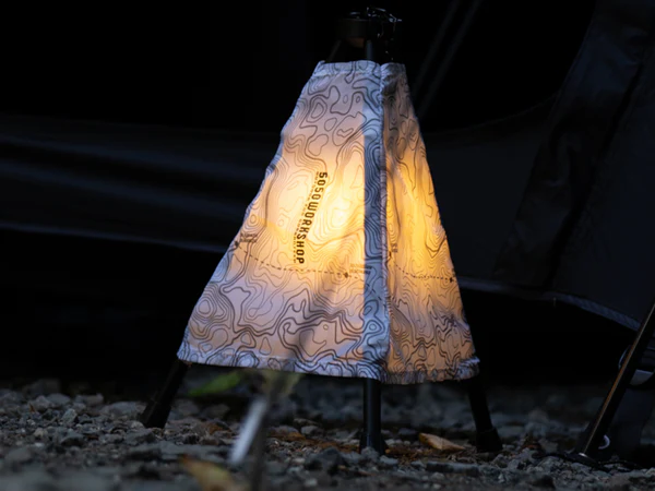 5050WORKSHOPのTHE ANDON × TRIPOD HANGER(ザ アンドン×トライポッドハンガー)は、MINIMALightなどの小型LEDランタンを吊るし、専用カバーを取り付けることで行燈のような優しい灯りを演出してくれます。