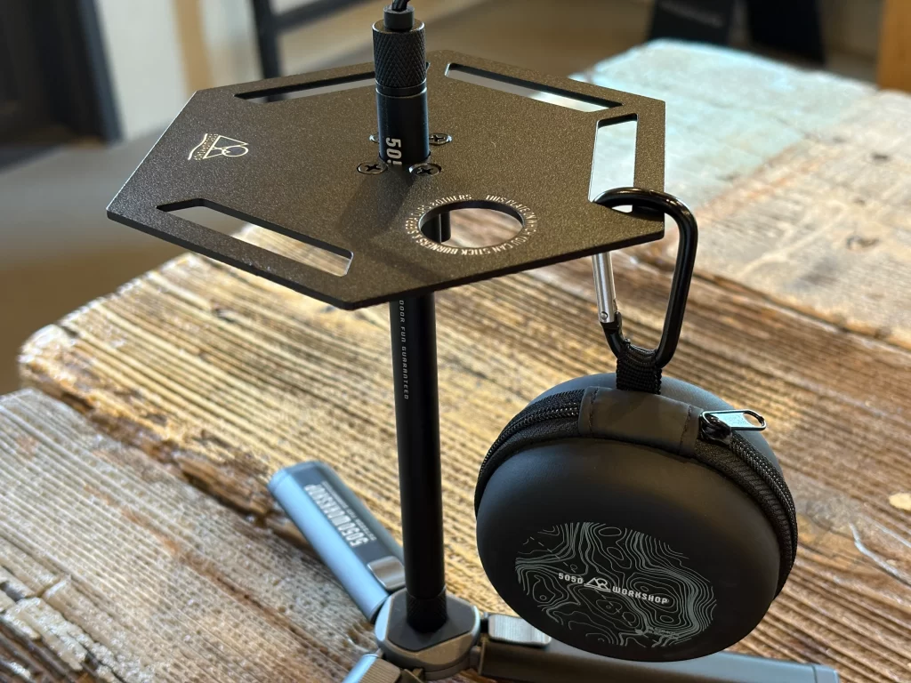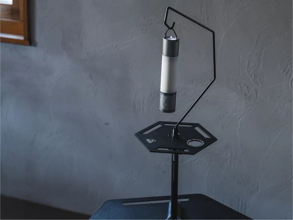 ちょっとした小物置きやプレートの縁には開口部分があるのでカラビナフックを付けて小物かけやシェラカップなどもかけることが出来ます。